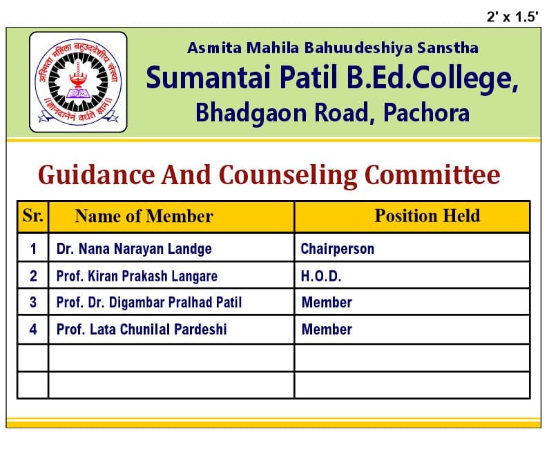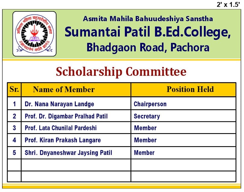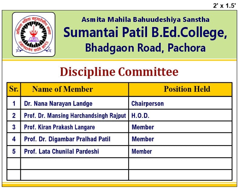 10 | Vaishali Raj Patil | Member-Nominated by the management in consultation with the principal from the field of Social Service |