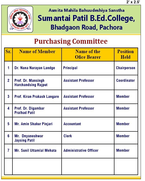 7 | Mr. Tushar Rajendra Suryawanshi | Librarian | Secretary |